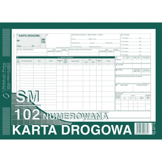 801-1N KARTA DROGOWA SM/102 NUMEROWANA (SAMOCHÓD CIĘŻAROWY)