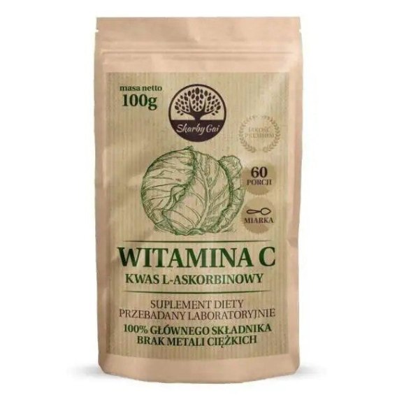 Skarby Gai Naturalna Witamina C Kwas L-askorbinowy z kapusty 100 g  to produkt bazujący na naturalnych źródłach witaminy C, pozyskanych z kapusty. Proces produkcji gwarantuje czystość i wysoką jakość produktu, eliminując potrzebę stosowania zbędnych dodatków czy wypełniaczy. Dzięki temu stanowi on idealny wybór dla osób ceniących naturalne składniki.