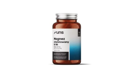 UNS Magnez chelatowany + B6 90 vege kapsułek to suplement diety w formie roślinnych kapsułek, zawierających wysokiej jakości magnez w formie chelatu oraz witaminę B6 w optymalnych proporcjach. Forma chelatowana magnezu zapewnia jego lepszą przyswajalność przez organizm w porównaniu do tradycyjnych form tego pierwiastka.