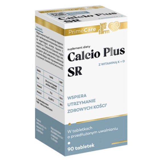 WegaFarm Calcio Plus SR 90 tabletek to suplement diety opracowany, aby wspierać zdrowie kości i zębów, dostarczając organizmowi kluczowych składników mineralnych, w tym wapnia. Formuła produktu została wzbogacona o witaminę D3, która jest niezbędna dla prawidłowej absorpcji i wykorzystania wapnia w organizmie. Produkt jest szczególnie polecany dla osób w starszym wieku, kobiet w okresie menopauzy oraz osób, które są narażone na ryzyko osteoporozy.